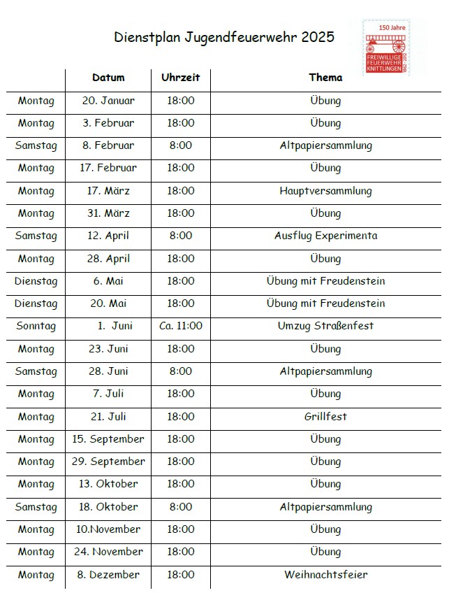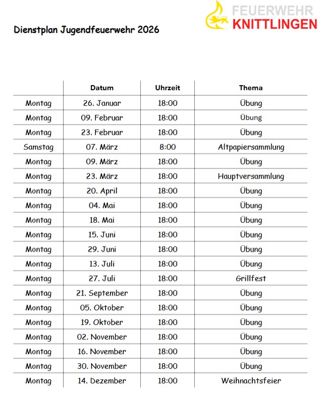 Den aktuellen Dienstplan der Jugendfeuerwehr von der Abteilung Knittlingen können Sie hier als PDF-Datei herunterladen: